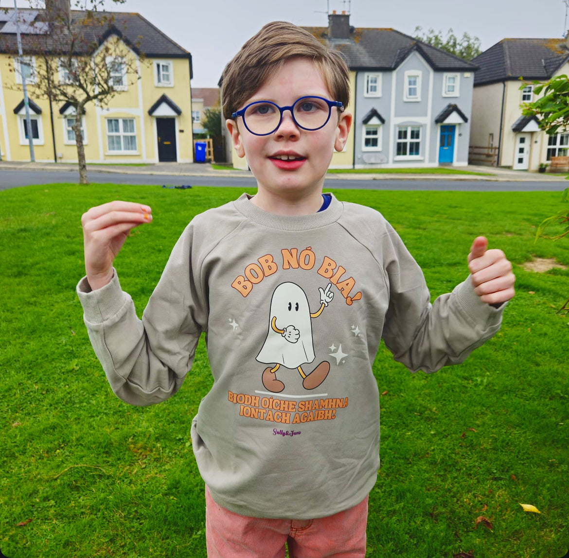 Round neck, cotton and polyester mix organic sweater. Snug fit so if in doubt, SIZE UP! Available is ages 3-6m up to age 9/11y.
