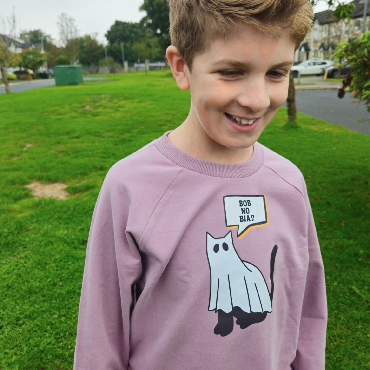 Round neck, cotton and polyester mix organic sweater. Snug fit so if in doubt, SIZE UP! Available is ages 3-6m up to age 9/11y.